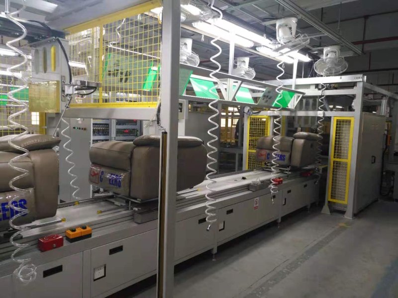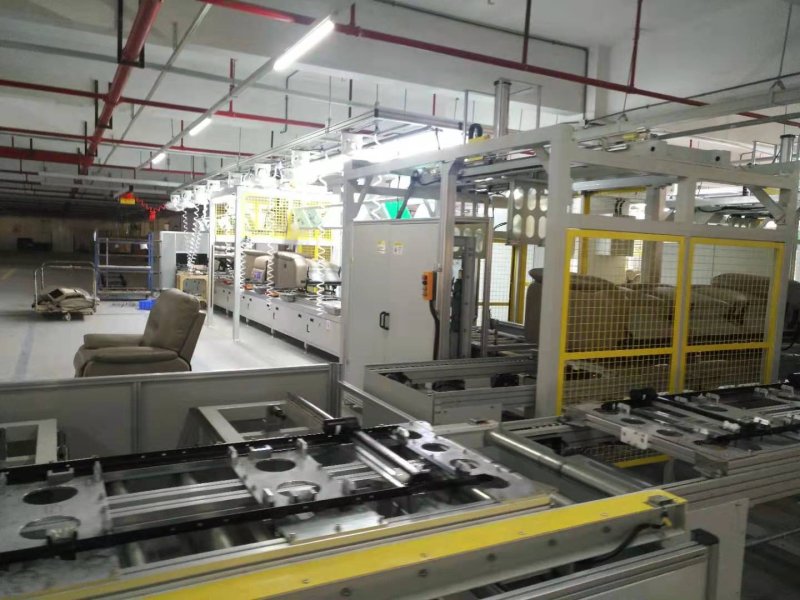 下層線體為空板返回線、可以使工裝板返回到上層,下層輸送線的端部設(shè)有阻擋器。輸送線的上面和側(cè)面均進(jìn)行封裝。沙發(fā)自動(dòng)化裝配生產(chǎn)線可以根據(jù)客戶實(shí)際需求配備助力機(jī)械臂。