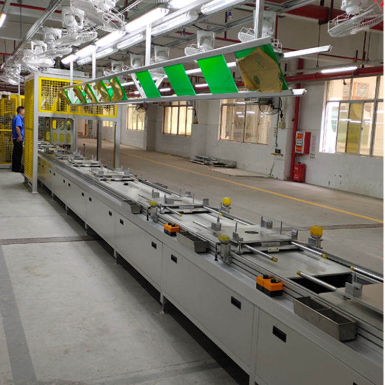 下層線體為空板返回線、可以使工裝板返回到上層,下層輸送線的端部設(shè)有阻擋器。輸送線的上面和側(cè)面均進(jìn)行封裝。沙發(fā)自動化裝配生產(chǎn)線可以根據(jù)客戶實際需求配備助力機械臂。