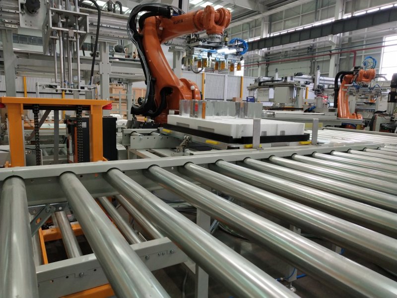 新能源電池PACK裝配線主體采用滾筒線帶托盤回流方式,包含助力機械臂、KPK、機器人等自動化設(shè)備;
