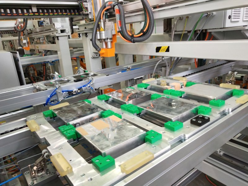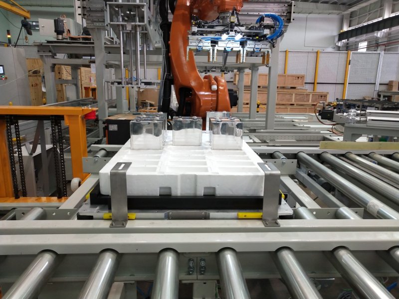 安裝完成后在組裝箱蓋前通過KPK將PACK包放置到棧板上,輸送到測試工位進行EOL和充放電測試等。測試合格后箱蓋組裝工位后進行對箱體的密封性檢測,OK后通過KPK將PACK包吊裝下線。